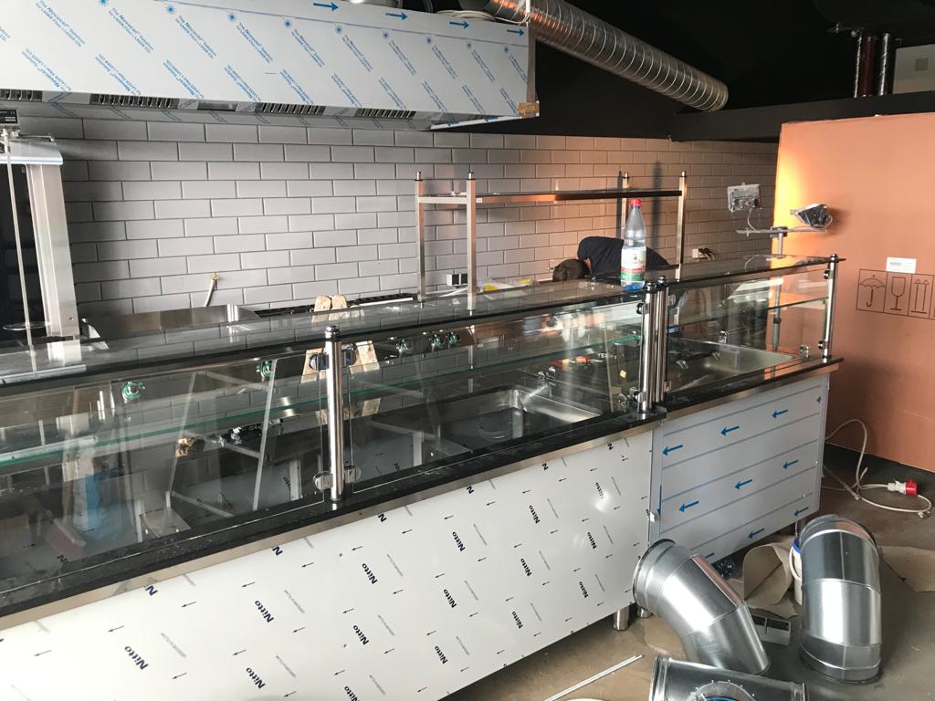 Im neu eröffneten Take a Piz haben wir den Kunden mit einer Küchenzeile, Zu- & Abluftanlage, sowie kompletter Inneneinrichtung ausgestattet